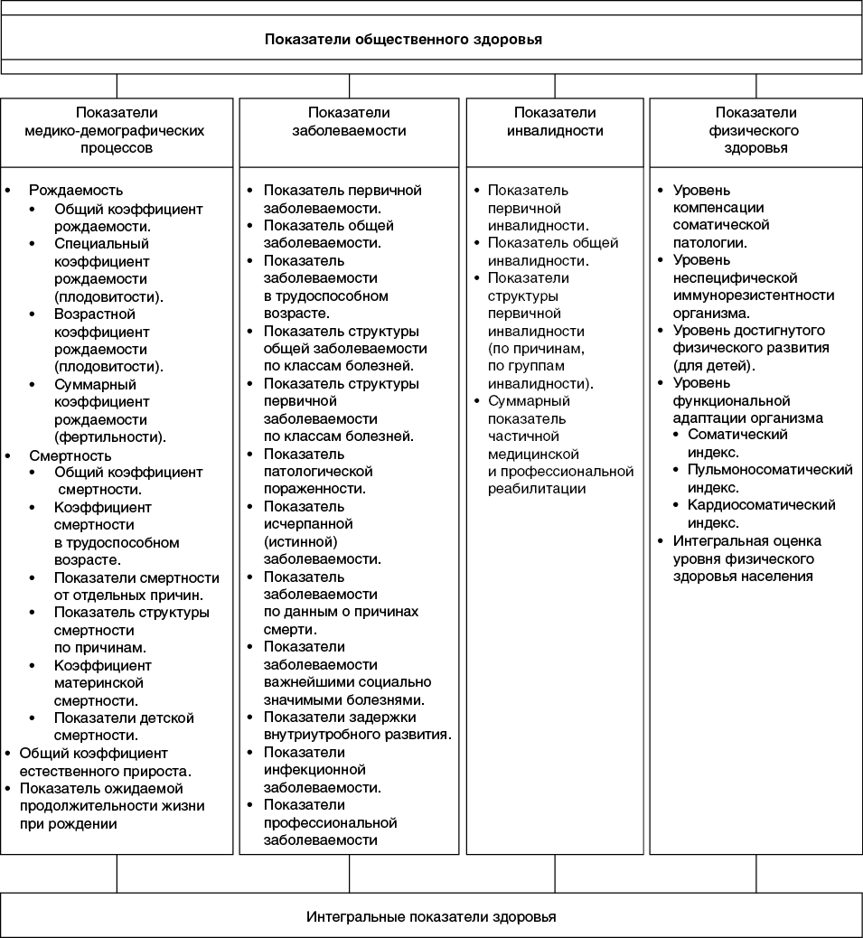 Рис. 5.1. Показатели, используемые для изучения общественного здоровья и управления здравоохранением